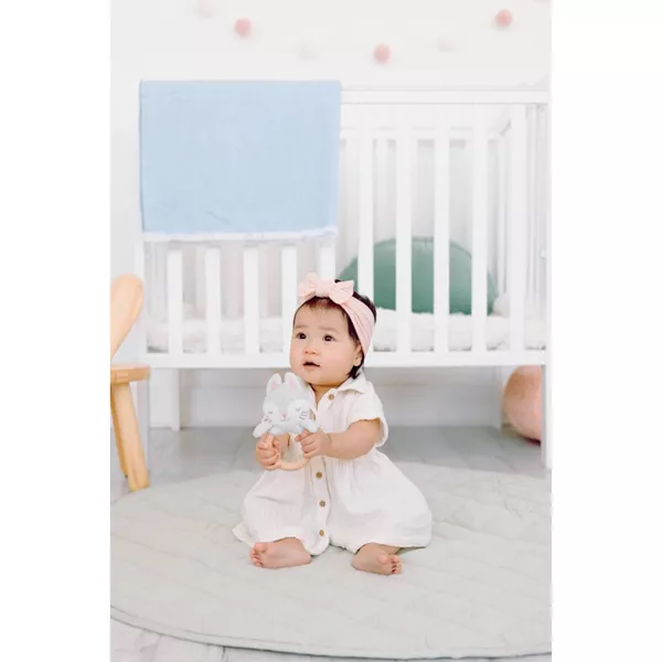 Plush Stuffed Bunny: Soft gray rabbit stimulates touch and sensory exploration.